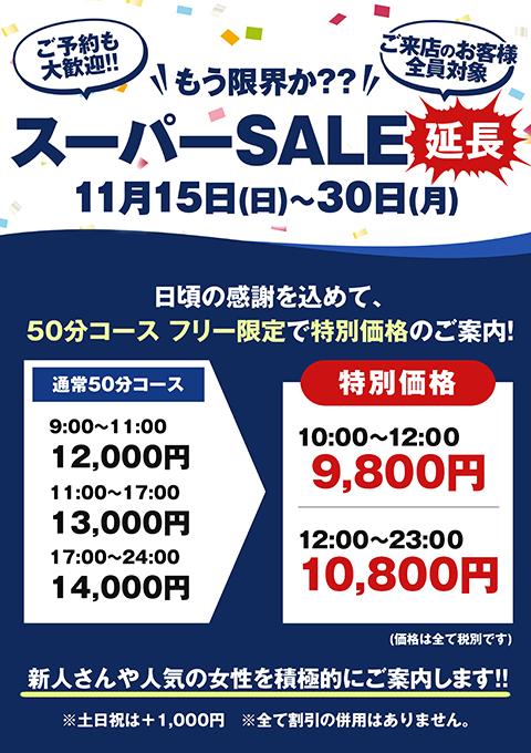 日頃の感謝を込めて、50分コース フリー限定で特別価格のご案内!