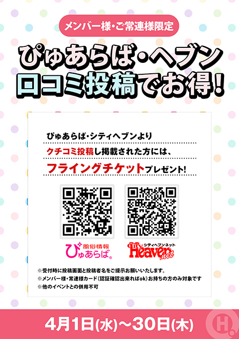 メンバー様・常連様限定/ぴゅあらば・ヘブン口コミ投稿でお得!
