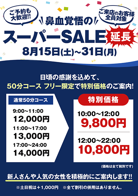 日頃の感謝を込めて、50分コース フリー限定で特別価格のご案内!