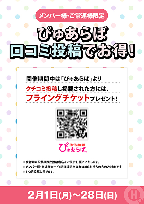 メンバー様・ご常連様限定/ぴゅあらば 口コミ投稿でお得!