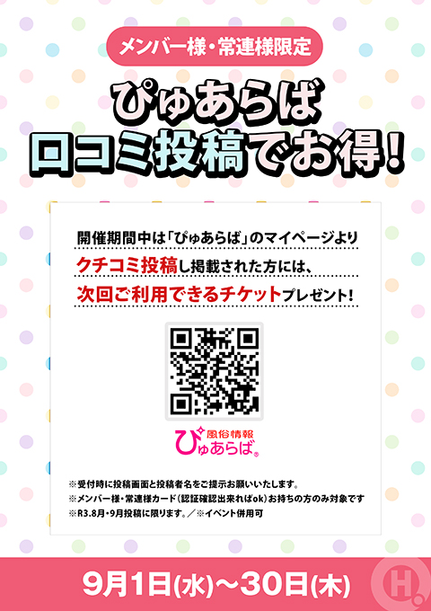 メンバー様・常連様限定/ぴゅあらば口コミ投稿でお得!