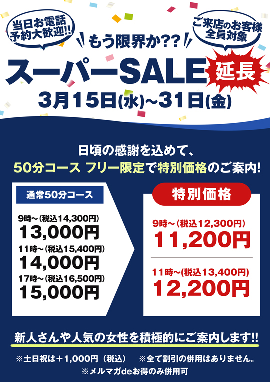 日頃の感謝を込めて、50分コースフリー限定で特別価格のご案内!