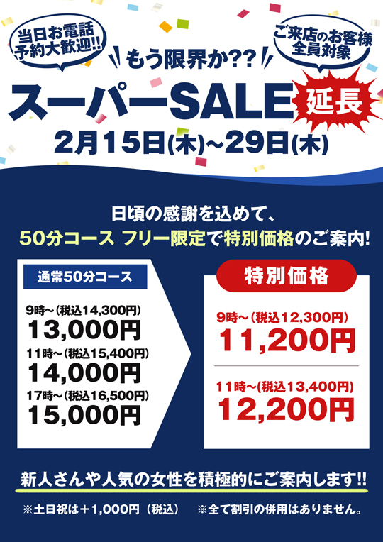 日頃の感謝を込めて、50分コースフリー限定で特別価格のご案内!