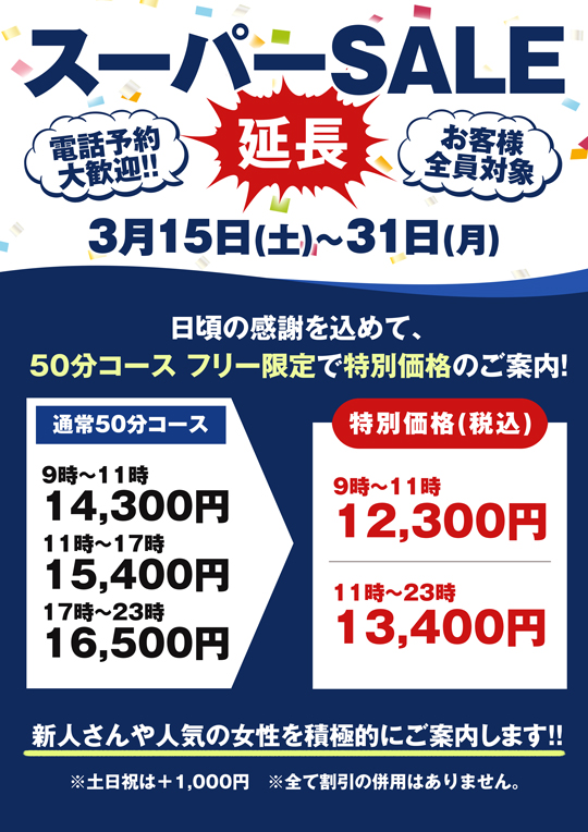 日頃の感謝を込めて、50分コース フリー限定で特別価格のご案内!