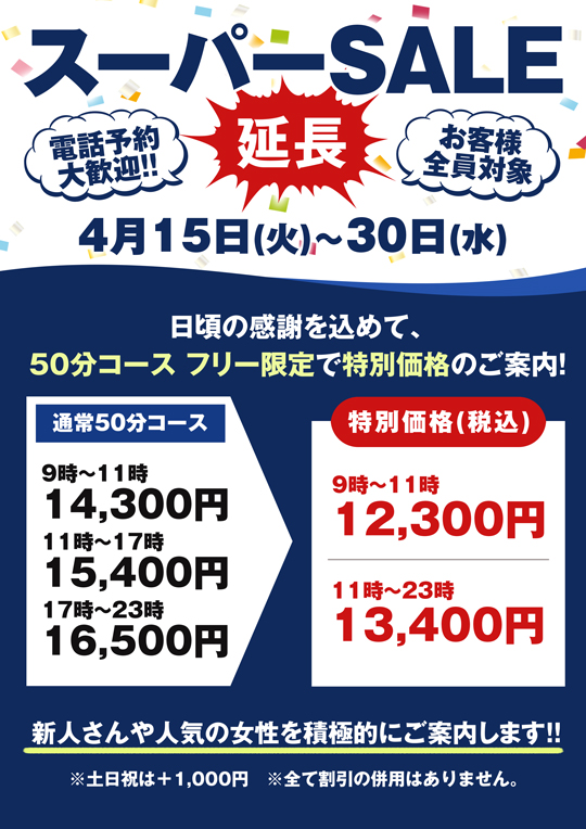 日頃の感謝を込めて、50分コース フリー限定で特別価格のご案内!